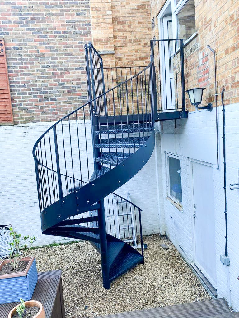 Our Bespoke Outdoor Spiral Staircases are the ideal solution for providing the perfect design and shape for your project when a galvanised or coloured staircase is needed. Hot galvanised to protect against corrosion and powder coated both for additional protection and to give a beautiful finish. Powder Coating available in any colour. The perfect Outdoor Spiral Staircase for Garden and Terrace access.