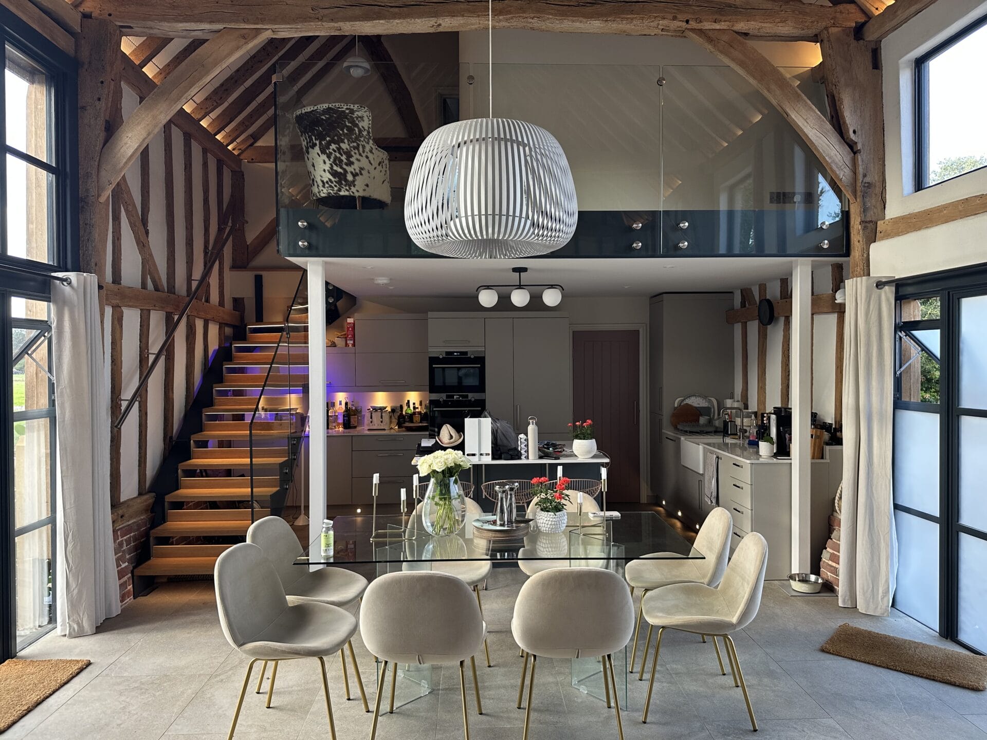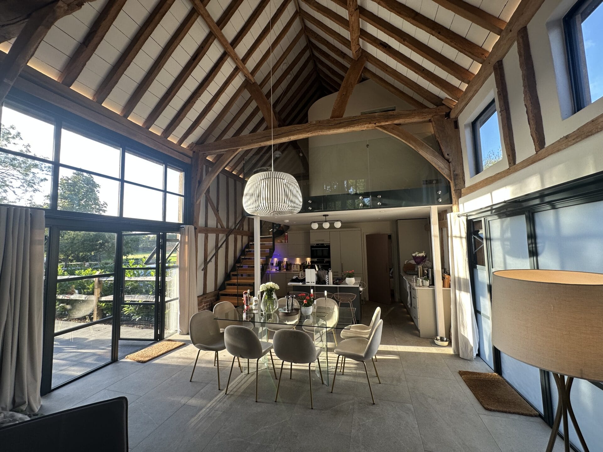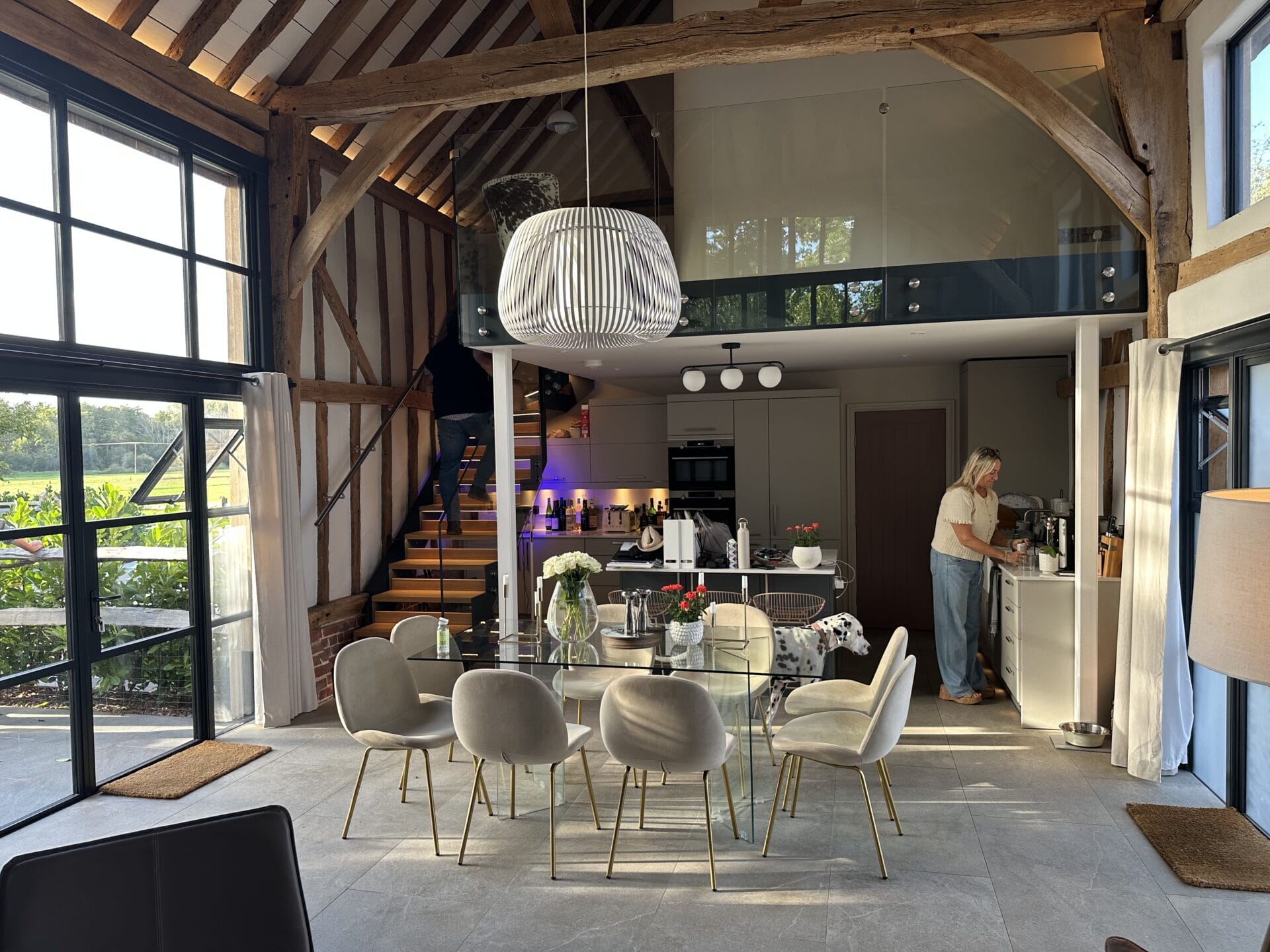 Setting: Open-plan Grade II listed barn conversion